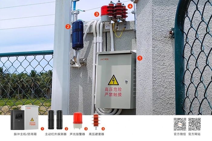 In case of forced intrusion, the electronic fence will provide a pulse high-voltage strike within the safe energy range, warning illegal intruders and shaking their ability and motivation to climb over the fence. At the same time, the system emits a high decibel sound alarm on site and is linked with other security systems (such as alarm hosts, monitoring systems, etc.) to achieve the purpose of safety obstruction.