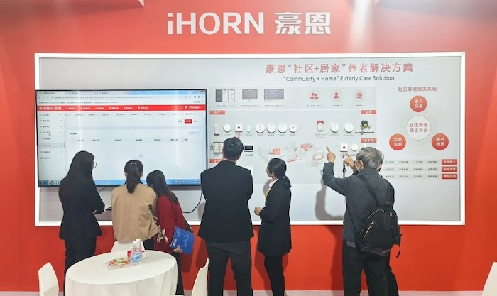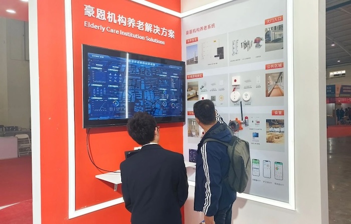 展會(huì)現(xiàn)場(chǎng),豪恩展示了社區(qū)+居家、機(jī)構(gòu)養(yǎng)老解決方案,以智慧養(yǎng)老綜合管理平臺(tái)為核心,統(tǒng)一管理各種前端智能養(yǎng)老設(shè)備,用科技手段幫助老人安心生活,幸福養(yǎng)老。