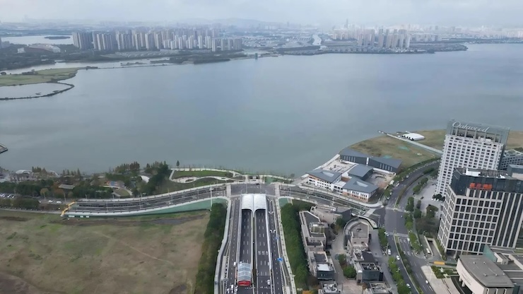 獨墅湖南隧道建成后,吳中區(qū)郭巷街道至工業(yè)園區(qū)科教創(chuàng)新區(qū)的車程由30分鐘縮短為5分鐘,極大地方便了兩地居民的通勤,真正體現(xiàn)了“人民城市人民建、人民城市為人民”的設(shè)計理念。