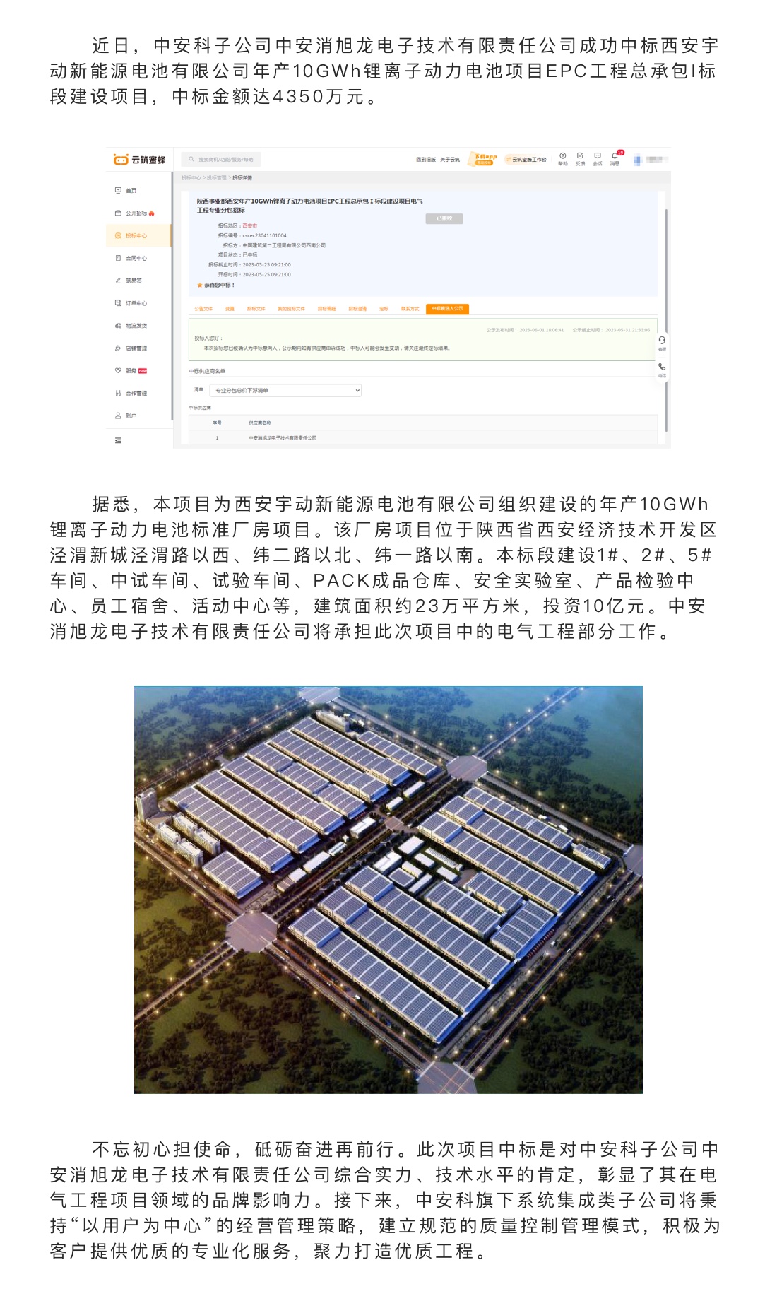 中標(biāo)喜報(bào)|中安科子公司中安消旭龍電子技術(shù)有限責(zé)任公司中標(biāo)西安宇動(dòng)新能源電池有限公司年產(chǎn)10GWh鋰離子動(dòng)力電池項(xiàng)目EPC工程總承包I標(biāo)段建設(shè)項(xiàng)目