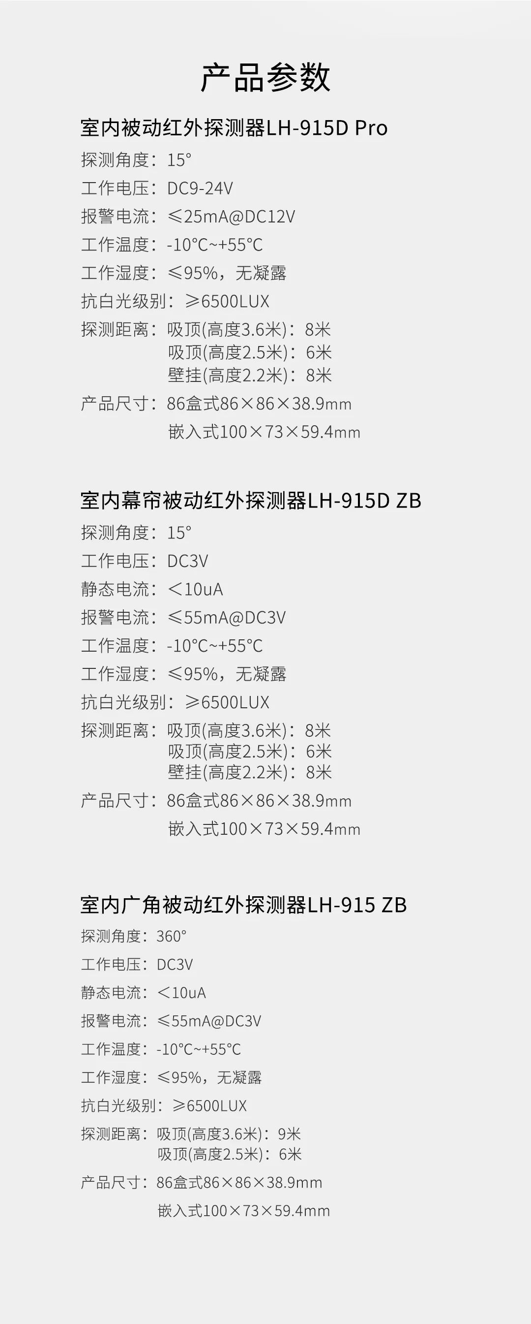 豪恩安防室內(nèi)被動(dòng)紅外探測(cè)器 LH-915 系列
