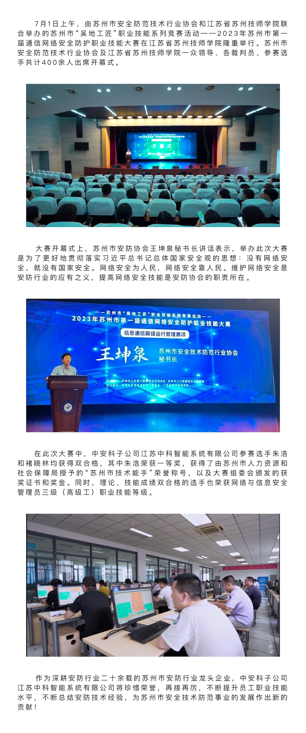 喜報 | 中安科子公司中科智能參賽選手獲第一屆蘇州市通信網(wǎng)絡(luò)安全防護(hù)職業(yè)技能競賽第一名