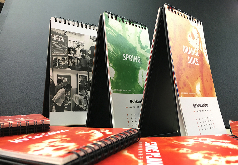 (圖1:選用孩子繪畫(huà)作品制成的臺(tái)歷)