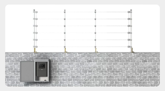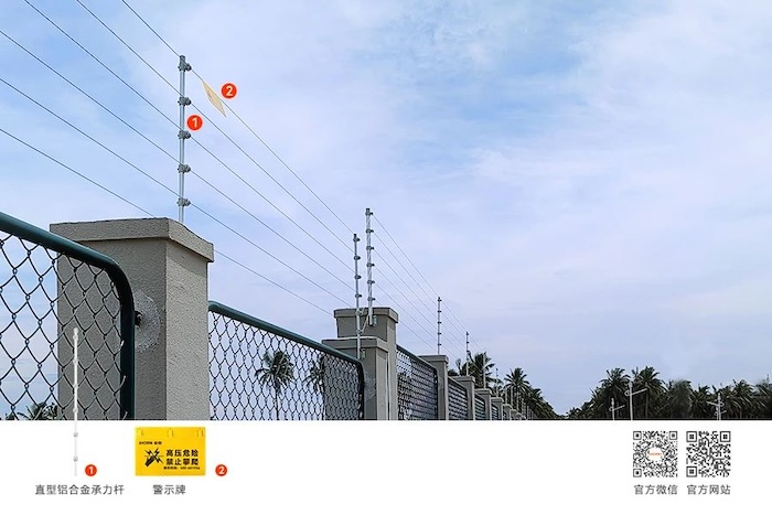 脈沖電子圍欄通常沿著圍墻安裝,區(qū)別于局限于視距和直線及平坦區(qū)域環(huán)境的紅外線、微波墻等防范系統(tǒng)。電子圍欄全天候工作,穩(wěn)定可靠,可以依據(jù)地形任意架設,不受地形高低和邊界曲折形狀的限制,也不受氣候、植物、小動物等因素影響。